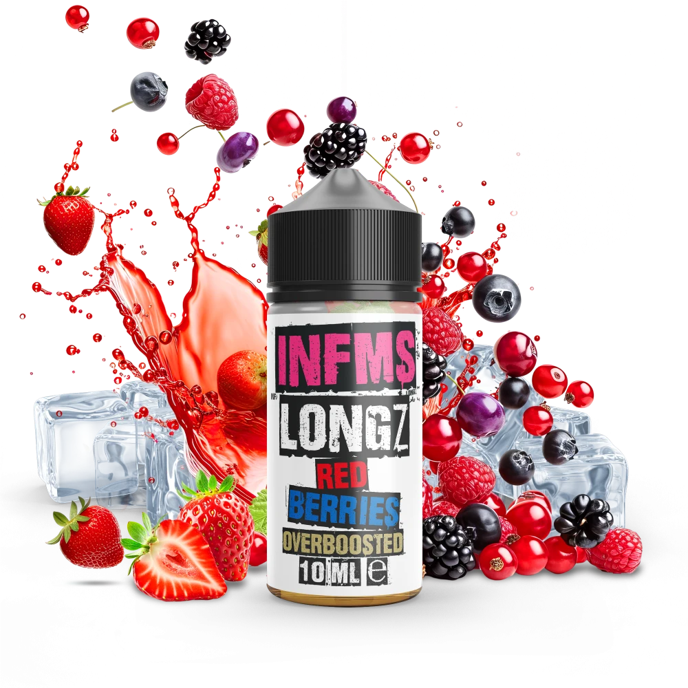 Infamous Longz Red Berries intenzivna je mješavina crvenog bobičastog voća s naglašenom svježinom, koja donosi sočan, hladan i snažno voćni udar već pri prvom udahu.